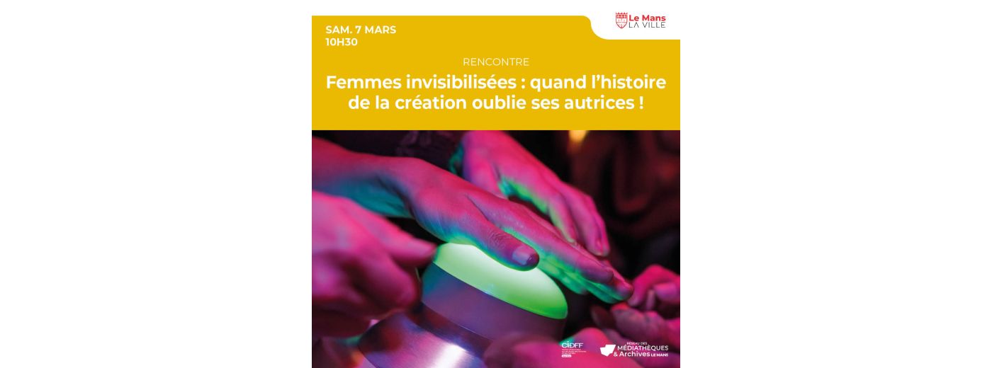 Le CIDFF de la Sarthe vous invite à participer à un quiz / blind test ludique et interactif autour des femmes invisibilisée dans l’histoire de la création. Entrée libre dans la limite des places disponibles 10h - Aragon Adultes