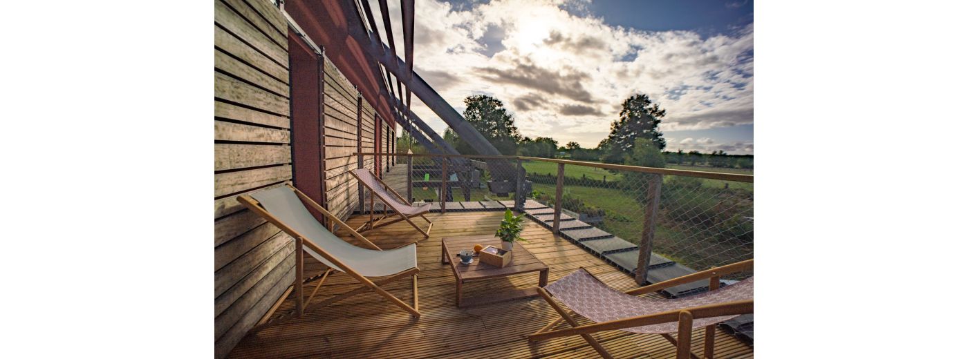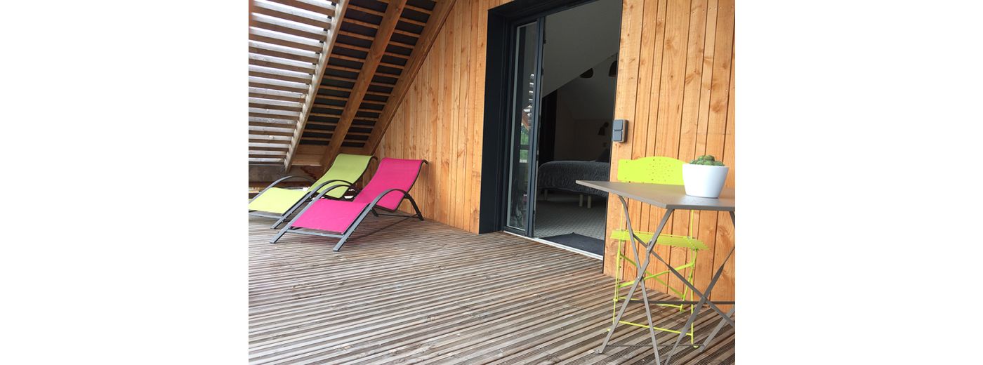 • Plusieurs terrasses extérieures privatives ou communes, équipées (tables, transats, parasol).