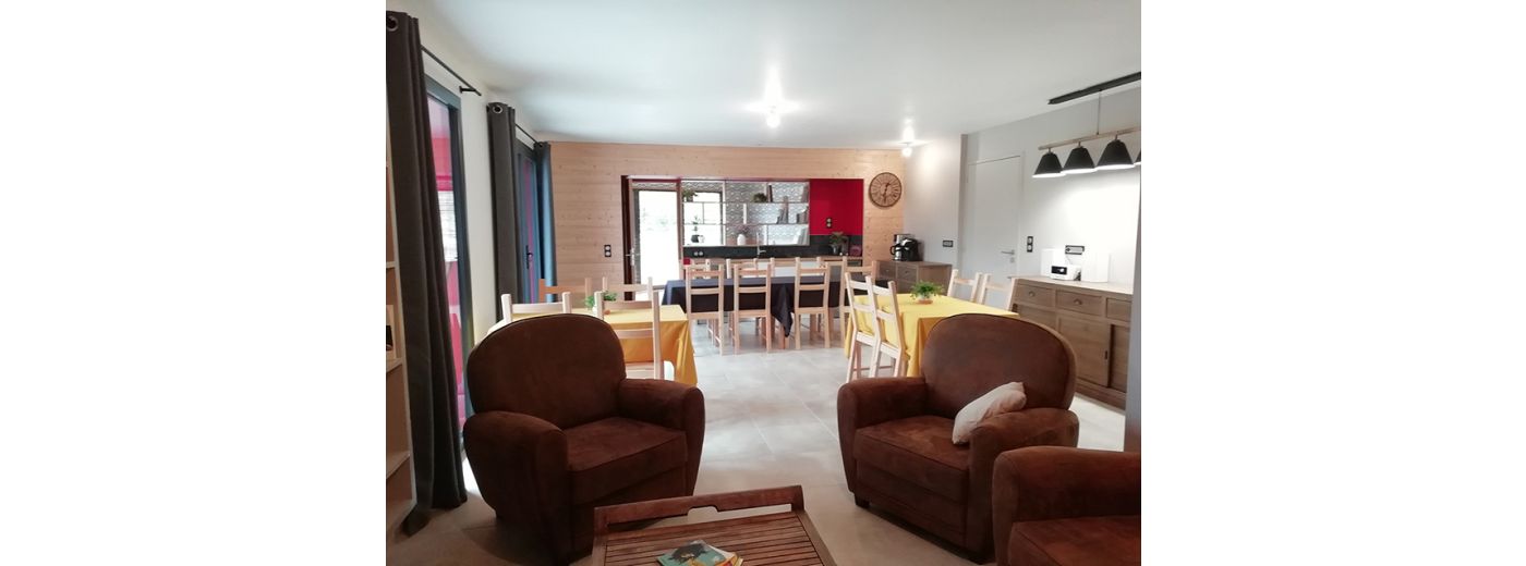 • 1 salle commune de 45 m2 pour 15 places assises, avec 1 cuisine équipée/ 1 espace salon détente/ WC PMR.